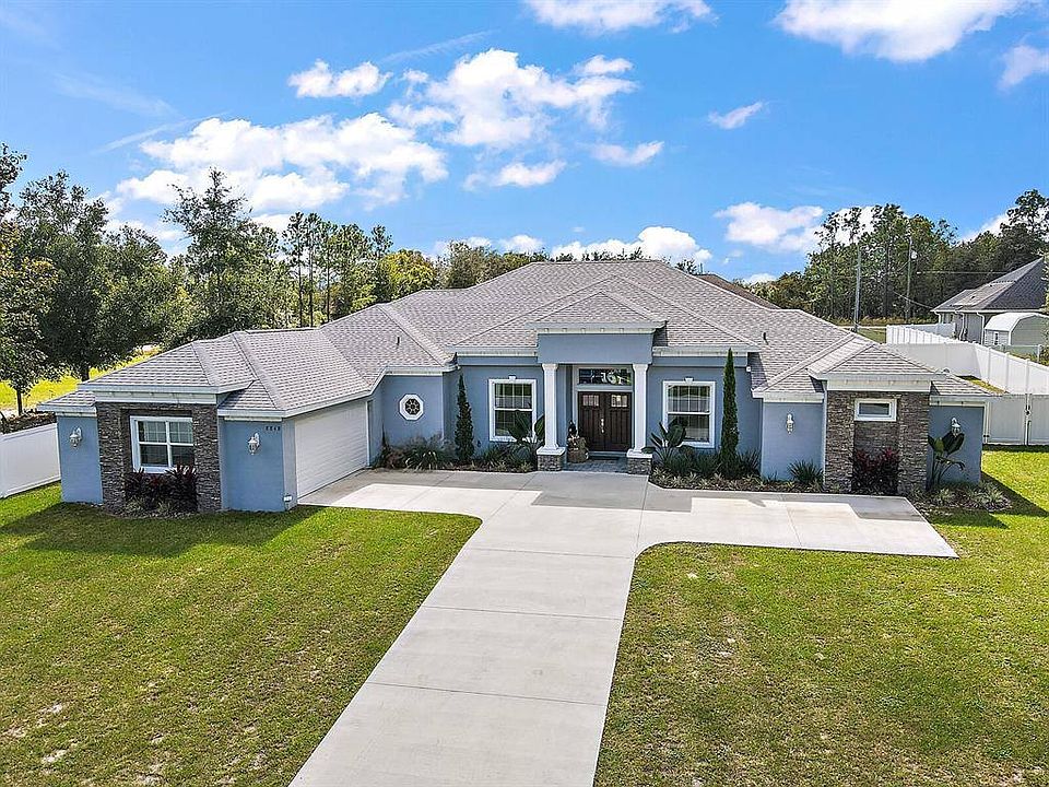 Are you looking for LUXURY and your DREAM home? You have found it in this CUSTOM built home! This three bedroom, three full bathroom, home with a Den is just minutes from the VILLAGES but with no HOA! This magnificent 3200+ square foot home features LOTS of UPGRADES including 10 foot TRAY CEILINGS, a GOURMET KITCHEN that includes STATE of the ART APPLICANCES, a HUGE ISLAND, CUSTOM CABINETS, and GRANITE countertops. There is LUXURY VINYL FLOORING throughout the house, 2 FIREPLACES, and much, much MORE! The OWNER'S SUITE has a SPA like bathroom that is a MUST SEE!! FEATURING a beautiful stand-alone tub, DOUBLE-ENTRY shower with MULTIPLE SHOWER HEADS including a 13 inch RAIN HEAD. The walk-in closet is so big that you might get LOST in it! There are 2 other FULL BATHROOMS and BEDROOMS, as well as a HUGE, PRIVATE DEN which could be used as an EXTRA BEDROOM, HOME OFFICE or TV/GAMING ROOM. Did you say you needed storage? This house has a OVER-SIZED KITCHEN PANTRY, and a large laundry room with a full sink, cabinets, and a built in Dog Bed. Step out back to the COZY outside porch for relaxing or entertaining overlooking the HUGE, VINYL, FENCED in yard! This house would be perfect for a POOL ADDITION, including PRE-WIRING and POOL BATH. The huge side yard is perfect for RV/BOAT PARKING, as well as an additional storage building. This home is located in a quiet neighborhood that is GOLF CART friendly, close to SHOPPING, RESTURANTS, UF Hospital/doctors offices, this house will not last long! Perfect for those that want to be close to The Villages without paying The Villages Prices.