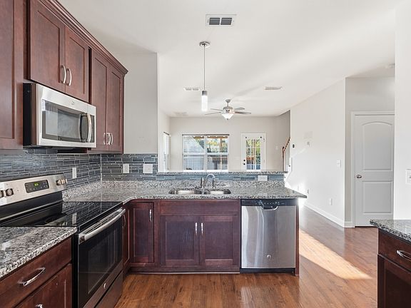 This lovely Like-new 2 story 3 bed, 2.5 bath home featuring an open floor plan with a dining room, open kitchen, granite counter tops, large bonus room, lots of floored attic space for EXTRA STORAGE, a private covered deck out back and more! The main suite is downstairs, two beds and a bonus room upstairs. Fence back yard. No Neighbors behind you. Additional cleared common area beyond fence.