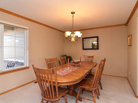 Key features: Total of 4270 sqft, 6 bedrooms 4 baths. The main floor has a bedroom and a full bathroom, a large kitchen with an island, breakfast nook, a formal dining room, a front living room, and a large family room with a gas fireplace and high ceilings. Laundry room is on the main floor. Upstairs: a master suite with a 5 piece bathroom and walk in closet, 3 additional bedrooms share a full bathroom. Basement: walk-out access, finished with a bedroom, a 3/4 bathroom, a wet bar, and a large living area. Garage: attached 3-car. Outdoor space: sliding door off the breakfast nook opens to an oversized deck and a fenced backyard back to open space.
