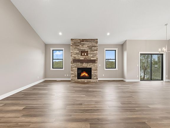 Stone fireplaceAmazing viewsQuartz countertopsOpen floor planTiled backsplashSoft close cabinetrySs appliances