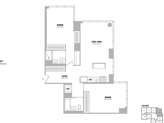 Master bedroom has two full walls of closets and the apartment in general has the most closet space compared to other floor plans. Kitchen is a true open island kitchen which is wonderful for entertaining and leaves the space nice and open.