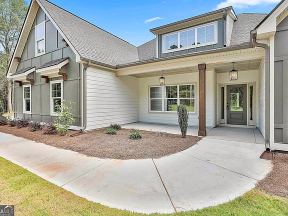 Harris A - The Harris is a new Ranch floor plan that you don't want to miss! This "A" Elevation has cottage charm that immediately invites you in. An office/living room with French doors is right off the front entrance. The gorgeous kitchen has toffee cabinets, stainless steel appliances, double wall ovens, a custom wood hood vent, and pull out trash can. Beautiful quartz countertops, a farmhouse sink, and a huge walk-in hidden pantry. A separate butler's pantry/coffee bar offers additional cabinetry and countertop area. This kitchen has everything! The peninsula allows for an eat in area in the family room/ breakfast room combo. Behind the sliding barn doors is the Primary suite oasis. Vaulted ceilings in the primary bedroom, an ensuite with double vanities, freestanding tub, and beautiful shower with a bench. The bathroom connects to the primary closet which is then connected to the laundry room! The flow in this home is amazing. On the opposite side of the primary suite there are three additional bedrooms and two additional full baths. On the expanded covered patio there is a woodburning fireplace, to sit and enjoy the expansive woods behind your home. A three car garage, on a 2.144 acre lot. This house has it all! This home is currently under construction - cabinets and countertops are installed! More photos coming soon! ***BUYER INCENTIVE: $25,000 to use towards closing costs, rate buy down, or price reduction, when working with a preferred lender and closing in 45 days*** Professional pictures coming soon! Ready to close in 60 days. This home is conveniently located just minutes from I85 and less than 10 minutes from charming, historic downtown Newnan and Ashley Park for premier shopping and dining.
