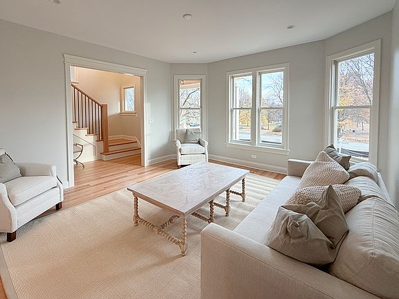 Ready to be wowed? This home has been rebuilt by Midwest custom homes and features a modern layout and upscale features. The main level features a TWO STORY FOYER, Great Room feel with living room and dining room BOTH OPEN TO UPSCALE CHEFS KITCHEN with SS appliances, quartz counters, HUGE ISLAND with hearth room with built in bar area. Separate main level family room. A powder room and large mudroom WITH BENCHES AND STORAGE round out this space. The second level features a primary suite with multiple closets, private spa-like bath, and HUGE BONUS FLEX ROOM OFF MASTER with deck to yard. A 2nd floor laundry center offers convenience as well. Bedroom 2 offers a private bath, and bedrooms 3 and 4 share a well appointed hall bath. THREE CAR garage offers ample storage as well! EVERYTHING IS NEW NEW NEW Great location with walkability to downtown St. Charles restaurants, parks walking trails, Fox River, Whole Foods and more! A must see! St. Charles schools district 303!