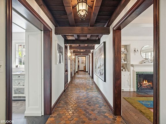 Introducing "Owl Hollow," an extraordinary French-country, brick home designed by the esteemed architect, Stanley Anderson, and meticulously restored and updated by James LaDuke and Associates to the highest of standards. Nestled within nearly an acre of meticulous newly landscaped grounds, this residence is a private paradise that harmoniously blends historic charm with modern amenities. Surrounded by over 400-feet of restored brick and limestone walls that exude elegance, exclusivity, and envelop the home with a sense of complete privacy. Through tall gates, one approaches the home via a circular granite paver driveway, recently expanded for additional off-street parking. Upon entering, you will be captivated by the seamless fusion of original architectural details and updates for modern living. The addition of a garden room, designed by Austin Dupree of Northworks, seamlessly connects the oversized, heated 2 car garage to the main house, featuring extensive coat closets, heated floors, a decorative garden sink for added convenience, and custom doors that open up directly to the tiered, bluestone patios. The updated eat-in kitchen is a culinary masterpiece, boasting Burmeister custom cabinetry, dual Wolf ovens and cooktops, a large eat-at island, and a built-in banquet breakfast area. This inviting space opens directly into the private bluestone courtyard, complete with an original water feature, offering a perfect setting for al fresco dining and tranquil relaxation. Flanking the kitchen is the spacious family room complete with integrated surround sound, and the dining room, which overlooks the gardens, complete with a gas fireplace for the perfect dinner party ambiance. Throughout the home, original millwork moldings and timeless finishes are meticulously preserved, creating period ambiance of refined elegance. The 2 plus-story great room exemplifies this, showcasing its original timber beams and herringbone wood floors. The original spiral staircase, one of 2 stairs to the second floor, leads to the spacious primary bedroom with a fireplace and seating area, an ensuite bathroom featuring a walk-in steam shower, soaking tub, and, a dressing room with beautiful built-in cabinetry. Three additional bedrooms and two fully updated marble bathrooms complete the upper level, each with timeless finishes. The finished basement provides a versatile space for a second family room or exercise room, offering endless possibilities for relaxation and entertainment, with plenty of storage in the utility room. Outside, two bluestone patio areas provide the perfect setting for outdoor gatherings, overlooking the expansive rear yard, which backs up to a ravine, offering a serene backdrop for this remarkable property. The side yard offers a separate tranquil space which could be perfect for the addition of a pool. The new cedar roof with new copper gutters and downspouts completes the exterior perfection of this home. Experience the timeless allure and modern luxury of this incredible home, where every detail has been thoughtfully curated to create a residence of unparalleled sophistication and charm. This home is a true masterpiece, offering a rare opportunity to own a piece of architectural history reimagined for contemporary living.