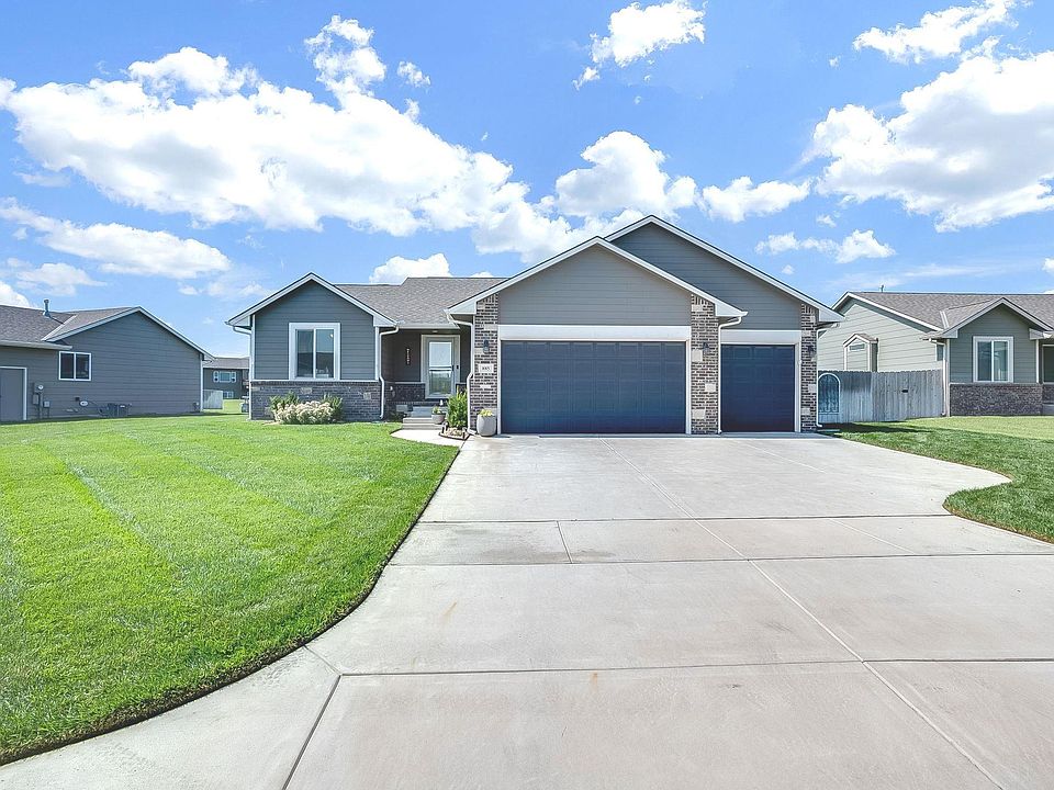 Home located in highly sought after GODDARD EISENHOWER High School subdivision; Built in 2022; 5BR/3BA/3Car garage(finished and insulated); Fully fenced backyard, irrigation well, sprinkler system, attractive landscaping front and back; beautiful patio with one of a kind pergola and HOT TUB READY(hot tub can be purchased independently of contract). Split bedroom floor plan, large granite island in kitchen, well designed pantry with plenty of space, and an informal dining area with extra large slider for access to patio. All 5 bedrooms are spacious with ample closet space, downstairs has bonus area and then a fantastic 20x20 area for family gatherings. No wet bar BUT plumbed and ready for you to create. Definitely a home you have been searching for that is tastefully decorated and ready for a new owner. Low specials for such a NEW NEIGHBORHOOD making this an awesome choice for your next home . Your time to take advantage!!