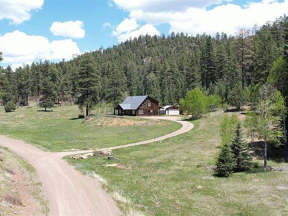 Welcome to your private mountain sanctuary, nestled on 35 acres of serene beauty with direct access to national forest land. This is the kind of peaceful paradise where you can truly retreat to nature—surrounded by majestic pine and aspen trees, the only sounds you’ll hear are birds singing and leaves rustling in the breeze. This spacious 2,894 sq ft home offers 3 bedrooms and 3 bathrooms, blending comfort, style, and warmth. Step inside to soaring ceilings and expansive windows that flood the interior with natural light, creating a seamless connection to the outdoors. The open-concept layout is perfect for gathering and relaxing, with modern updates and thoughtful finishes throughout. The kitchen featuries granite countertops, a live-edge backsplash that adds rustic character, and a large island with a built-in cooktop—ideal for preparing meals after a day in the forest. Step outside and take in your personal outdoor canvas—ideal for expansive gardens, horses, chickens, dogs, and more. Whether you’re an outdoor enthusiast, homesteader, or simply looking for a quiet retreat, this property has it all. Find an abundance of storage in the home and the large oversized, detached garage is perfect for your toys or a workshop. Use this as your primary residence, a family getaway, or a hunting lodge with trail-ready access to the national forest right from your front yard. This is what living in nature truly feels like—private, peaceful, and unforgettable.