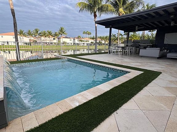 Single-Family Home in Doral Located in a gated community with the largest, most fully equipped, resort-style Clubhouse in Doral—offering the lowest monthly HOA fees in the area. This beautifully remodeled two-story home (fully updated just 2 years ago) features stunning lake views, 5 spacious bedrooms, 4 full bathrooms, and a guest half-bath. The expansive master suite includes three large closets. The modern kitchen boasts ceiling-height cabinetry, a smart-screen refrigerator, wine cooler, and double oven. Outdoor living is elevated with a custom pergola, porcelain countertop, built-in BBQ area, and integrated refrigerator. Enjoy a heated pool, low-maintenance artificial grass, and a seamless indoor-outdoor lifestyle.