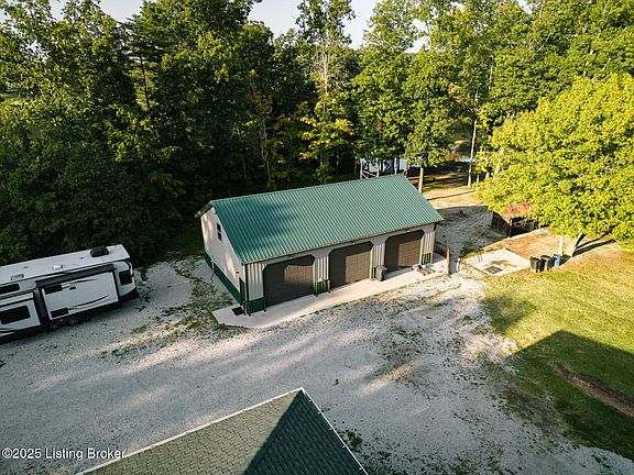 Rare opportunity to own 7.27 acres with 30 x 50 workshop that has four 10 ft tall doors, Spring feed pond, spacious home with over 5,100 sq ft of finished living space and 2 car attached garage! Located on a beautiful lot that has 765 ft of road frontage (potential to build a second home). Seller once ran a forklift business from property. Workshop has reinforced concrete floors, 5 ft. apron, 20 ft ceiling, wood burning furnace, and fully insulated with air compressor with attached hoses that remain. Beautiful lot with areas that are cleared, trails for ATV/golf cart thru property and of course the 100 yr old spring feed pond. Great for fishing, swimming, camping out or just relaxing and enjoying the peaceful surroundings. Pond has catfish, bass and bluegill. Seller leaving a flat bottom boat and canoe. RV Hook up site is ready as well with 50 amp hookup with water run to site. Home has a large covered front porch, recently expanded and stained rear deck, sunroom that has replacement windows. From the attached garage are steps that leads to large home office or could be another bedroom. Spacious Eat-in Kitchen, two fireplaces, large living room, dining room, Primary bed with Primary bath. Large family room in walk out basement with bar area and 1979 Steepleton competition table that remains. Monitor and Cameras remain. This is a beautiful property that would be great for the car enthusiast and/or sets up great to run small business.