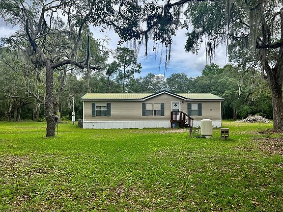 Affordable 3/2 MH on 4.5 beautiful acres in a quiet area with country charm and quick city conveniences. Inside the home is move in ready with solid bones but needs some TLC and updating, allowing you to renovate to your taste and style. Outside delivers a serene escape into nature with towering oaks and natural Florida foliage, this land is a true wooded retreat. Spacious 40x40 workshop/garage with power, this large space offers room to work, store equipment or start a new hobby. With Location close to Manatee Springs and the Suwannee River you will have easy access to fishing and water activities. With a little love this home could be a perfect retreat or full-time residency so don't miss out on this one.