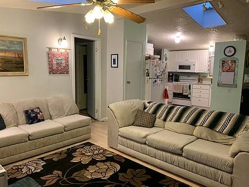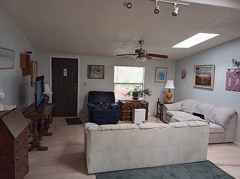 If you like a little privacy out on your deck and backyard you must see this home! In a family park, this home boasts three ample sized bedrooms and two very nice bathrooms. Relax and commune with family in an open living room with lots of room for all. It flows into the kitchen and into a designated laundry room. The washer and dryer are included! Laminate flooring throughout the entire home and skylights in the kitchen and living room give this home an updated look. Enjoy the comfort and economy of vinyl, dual pane windows throughout the home. This private backyard is a treasure in itself. There is a large, beautiful deck for outdoor eating and lounging. The yard is full of mature plantings and a fountain to enjoy! The front yard has mature shrubs and trees. The neighborhood is very well maintained as well. Other features are the shed and close visitor parking. Carport, partially covered with room for two cars and perhaps a visitor! In this very desirable park, this home will sell quickly! Need Financing? We Can Help! Ask Me Today!