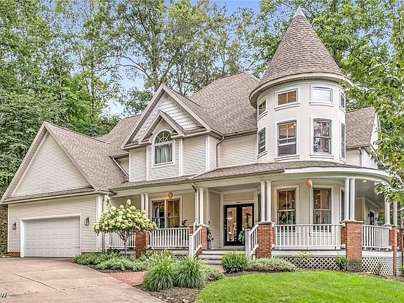 Welcome to 8851 Spring Valley Dr in Broadview Hts, a truly unique, vintage victorian meets modern farmhouse, 4-bed, 3.5-bath home filled with character & timeless charm. From the moment you arrive, the ample curb appeal & heated drive lead you to the inviting wrap-around porch, setting the tone for this special property. Inside, the 2-story foyer, rich woodwork, & large windows fill the home with warmth & natural light. The kitchen is a chef’s dream with quartz counters, custom island, stainless steel appliances, & plenty of built-in cabinetry, all complemented by a secondary dining space in addition to the formal dining room. Just off the kitchen, the family room features a striking fireplace, creating an inviting spot for gatherings & a study with built-in bookcases provides the perfect retreat for work or reading. The thoughtful floor plan showcases 4 spacious bedrooms, 2 full bathrooms, & the laundry all on the 2nd floor. The master suite offers a true retreat with a vaulted ceiling turret sitting area & the en-suite is complete with twin sinks, a luxurious soaking tub, & a separate shower, creating a spa-like oasis that feels both elegant & inviting. The remaining 3 bedrooms are also very spacious & share a full bathroom with quartz counters & newer custom stone shower. The newly finished basement with LVP flooring adds to the living space with a family room, kitchen area with an eating island, full bathroom, & a bonus room that can be used as a play room, home gym, or extra study. The walk-up attic is a designer’s dream boasting high ceilings & natural light just waiting for your finishing touch. Outdoors, enjoy seamless indoor-outdoor living with a newer back patio with private views of a serene creek, perfect for hosting & entertaining. With its architectural detail, spacious layout, & updates throughout, this home is an ideal blend of elegance & comfort in one of Broadview Heights’ most desirable neighborhoods with a top rated school district.