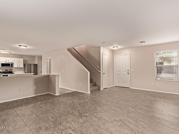 Discover the charm of this inviting two-story home in Arizona Skyline! Offering 3 beds, 2.5 baths, a 2-car garage, and a low-care landscape. The welcoming interior showcases abundant natural light, a neutral palette, and tile flooring throughout. You'll love the thoughtfully designed semi-open layout, which seamlessly balances privacy with connectivity! The eat-in kitchen boasts stainless steel appliances, quartz counters, ample white cabinetry, a center island, and sliding doors to the back. All bedrooms are upstairs for added privacy! The main bedroom has a private bathroom with dual sinks & a walk-in closet. Tranquility awaits in the large backyard! A covered patio & mature trees complete the picture. With room for a pool, you can make it a complete outdoor living space. Don't miss it!