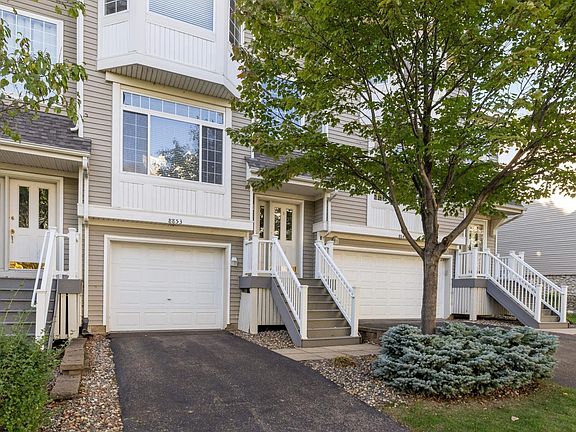 Welcome home to 8853 Brunswick Path! This is a well maintained, recently painted and move-in ready townhome in a prime location! Over $20k in updates including new kitchen appliances (May 2024), new water heater (June 2024), New furnace and AC unit (August 2022), both bathrooms remodeled (October 2024). Great layout with open main level floor plan with big windows on both sides. It’s an entertainer’s dream, featuring a cozy 3-sided fireplace, a half bath, and a seamless flow between the living room, dining room, and kitchen. The kitchen is well-equipped with a breakfast bar, abundant cabinetry, and countertop space, all while offering views of your private, tree-lined backyard in a parklike setting. Step outside to enjoy your morning coffee or unwind after a long day on the maintenance-free deck, where peace and tranquility await. Inside, you’ll find newer carpet and fresh paint throughout, recently updated bathrooms, creating a move-in-ready space. The upper level boasts two generously sized bedrooms with oversized closets and a full bathroom. The lower level offers flexibility with a bonus room that can serve as a home office, exercise space, 3rd bedroom, or playroom—whatever suits your needs. With convenient guest parking right across the street, this townhome has it all. Close to local parks, shops, golf course and restaurants. Schedule your tour today!