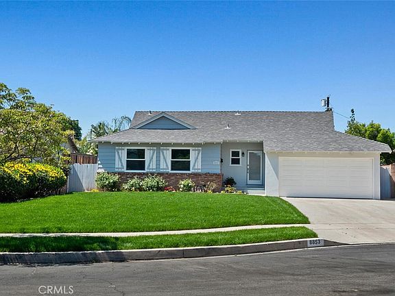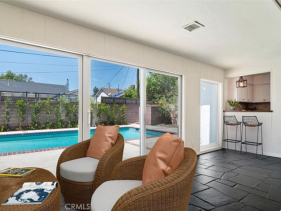 This home features 3 bedrooms, 1 full bathroom, and one ¾ bathroom, offering 1,623 sq. ft. of living space. The bright living/dining area includes wall-to-wall windows that fill the space with natural light. A custom-built fireplace adds warmth and character, and the refinished wood floors enhance the home's charm. The kitchen includes a breakfast area equipped with stainless steel appliances and tile countertops. There's also a convenient indoor laundry room with a utility sink just off the kitchen. Enjoy year-round outdoor living with a swimming pool. The spacious patio area and beautifully landscaped and fully fenced backyard are perfect for relaxation and entertainment. Additional highlights include recently installed doors, windows, light fixtures, fresh interior and exterior paint throughout, front and back sprinkler system and landscaping. The property also features a 2-car-attached garage with built-in storage shelves and direct access to the home, plus a very spacious driveway for extra parking. It’s conveniently located only two miles from Northridge Mall, great restaurants, Costco, and all the shopping. The property is virtually staged.