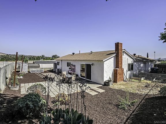Adorable cul-de-sac home with 3 bd + additional bonus bedroom size room (office, guest room, playroom, formal dining room) in the best neighborhood in west Santee. This is a great location north of Mast. Just a few minutes to schools, Santee Lakes recreation area, multiple parks and hiking/walking trails, Carlton Oaks GC and 52 freeway. Entertainment size living room with a brick fireplace and sliders to the back yard. The kitchen needs some TLC but other feature upgrades include remodeled bathrooms, 2 car attached garage, upgraded windows and sliders, central air conditioning, freshly painted, smooth texture ceiling, ceiling fans throughout. Large yard ready for a buyer to create . Potential RV parking. Light and bright throughout. Ideal for first time or down sizing buyers. This is a truly opportunity to own a single family home in a quiet desirable neighborhood.