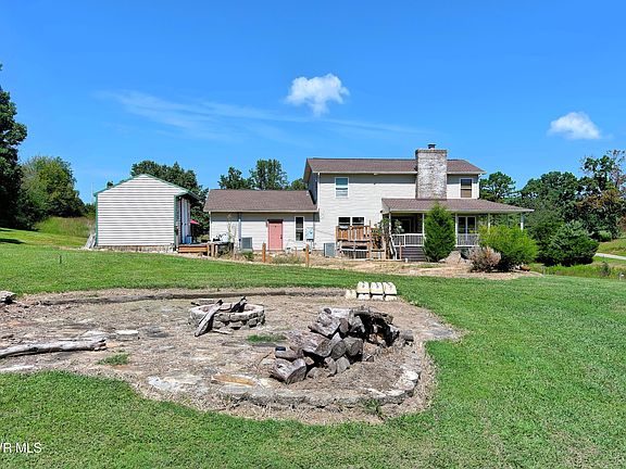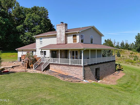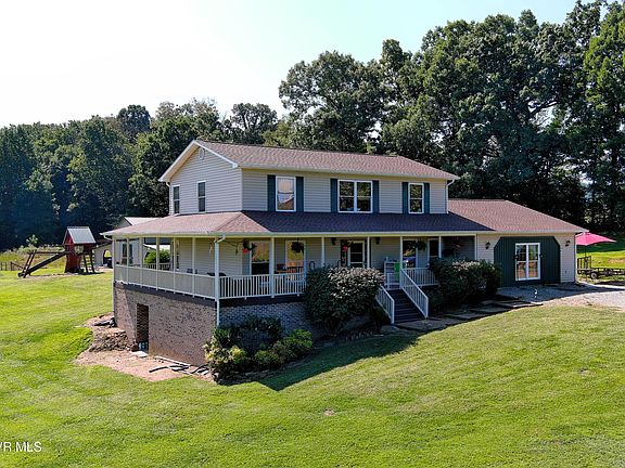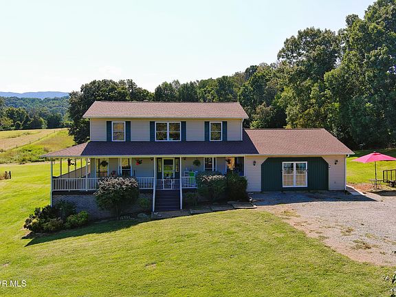 HOMESTEAD DREAM PROPERTY! Spacious farmhouse offers 5 bedrooms, 3.5 baths, with flexible spaces ideal for multi-generational living and 10.29 gently rolling acres with fenced pastures, woods and open spaces perfect for a homestead lifestyle. Main level features a foyer, living room with beautiful brick fireplace and wood-burning insert, open kitchen includes oak cabinetry, solid surface counters, appliances, and a bright eating area with French doors leading to wrap around deck and pool area, family room, dining room, office, two bedrooms, full bath, half bath, laundry and mud room. Second level offers the primary suite with walk-in closet, step-in shower, and large jetted tub, two additional bedrooms, full bath, and a loft sitting area providing the perfect space for reading and relaxing. Basement includes a finished room, ideal for exercise or playroom, open unfinished area with 9' ceilings, wood stove (needs fire bricks & liner), interior and exterior access, perfect for storage, workshop, or future expansion. Highlights include recessed lighting, hardwood and tile flooring, solid wood doors and trim, abundant natural light, 3 HVAC units, flowing floor plan and access to high-speed internet. Unwind while enjoying the countryside and mountain views from the wrap-around deck, relax at the fire pit, or shooting range recreation. The property includes a massive 37x41 metal barn with two attached sheds, livestock stalls, and workshop. A pool house with 2 half baths (needs to be reconnected to electric and septic), and an unassembled 33' round pool conveys (needs liner). Set back off the road with a brand-new architectural shingle roof in 2025, low taxes, and agricultural zoning, this property blends rural living with opportunity. Within an hour of Asheville, Bristol, Johnson City, Knoxville, Pigeon Forge, Sevierville, Gatlinburg, the Smoky Mountains, and multiple lakes, this farm is ready for your homestead vision. Buyer and/or Buyer's agent to verify all information.