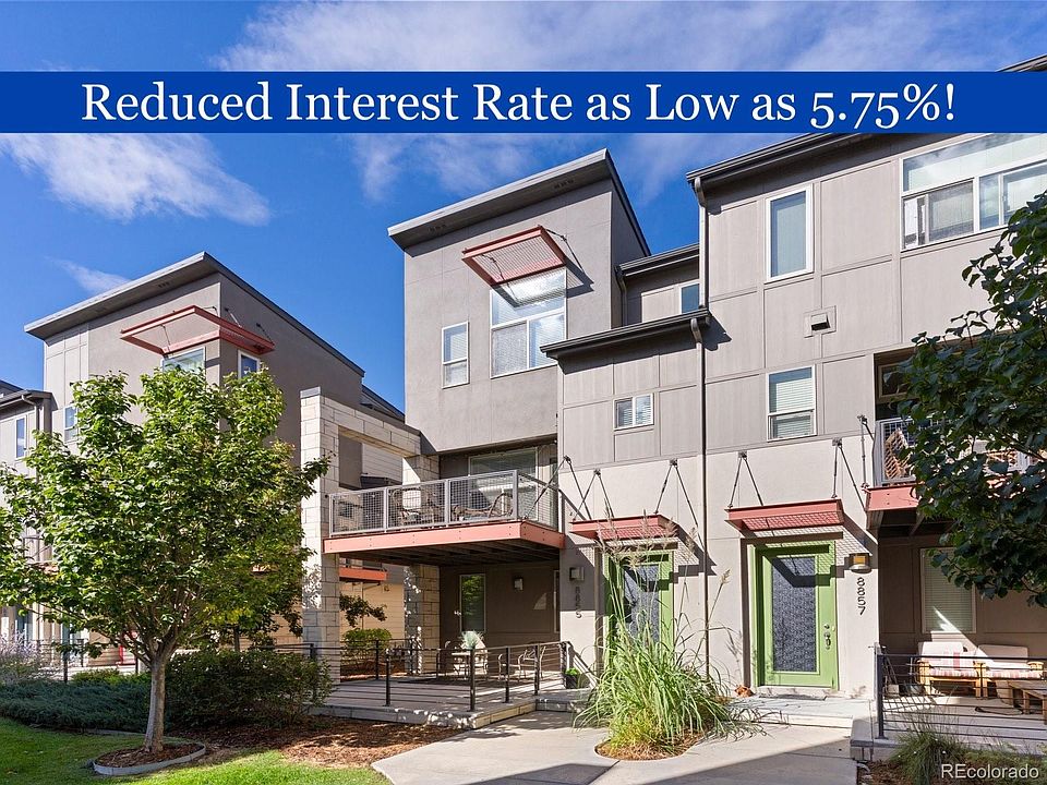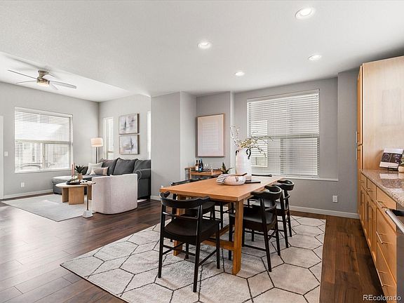 Step into this beautifully maintained 2 bedroom, 2.5 bath modern townhome, nestled in a charming courtyard in Central Park’s lively Willow Park East neighborhood. Enjoy the welcoming ambiance of a large fenced front porch and a spacious main-level balcony, perfect for relaxing after a long day. Inside, the open-concept main level showcases soaring 10-foot ceilings and warm wood floors, while the kitchen impresses with abundant cabinetry, sleek stainless steel appliances, and classic white subway tile backsplash. The inviting dining area seamlessly connects to a bright living room, which opens to the deck-style balcony for effortless indoor-outdoor living. Upstairs, retreat to the tranquil primary suite with dramatic ceilings, a generous walk-in closet, and a luxurious en-suite bath featuring a glass-enclosed shower with bench seating. A second well-sized bedroom, adjacent full bath, and conveniently located laundry closet provide plenty of comfort and flexibility. The lower level features an inviting foyer and direct access to the attached two-car garage. A central vacuum provides ease in everyday living. Just blocks from Beeler Park shops, Pearl Market, and Quilted Garden Park, with easy access to Maverick and Splash Landing Pools, this home offers quick commutes to Downtown Denver, DIA, and the Anschutz Medical Campus. Secondary HOA covers exterior of building including roof, gutters, landscaping, sidewalks and snow removal!
