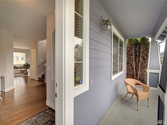 Gleaming hardwood flooring throughout both levels. AC Installed. A rare find! Never a rental. Very well cared for by the owner. Very cute & spacious house: fenced back yard, patio, 2 car garages, open floor plan on main floor, office/den upper level, double pane windows, sunny and bright, planned community with $17/mo dues, surround sound, gas heat & gas fireplace. Slider door opens to fenced backyard. Easy access to both I5 & I405, easy access to Burke Gilman Trail. Inspection report avai.
