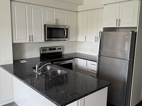 Modern & Spacious 2-Bedroom + Den, 3-bath stacked townhouse with a private rooftop terrace ina sought-after scarborough location! This bright multi-level home features an open-concept mainfloor with hardwood flooring, a sleek kitchen with granite counters, breakfast bar, and stainlesssteel appliances. Living and dining areas flow seamlessly with walk-out to balcony. Upstairs offerstwo generous bedrooms with mirrored closets, broadloom comfort, and large windows for plentyof natural light. The versatile den is perfect for a home office or study. Enjoy the convenience of 2full bathrooms + powder room, and in-suite whirlpool laundry. Relax or entertain on yourexpansive rooftop terrace with unobstructed biews - a rare feature ideal for summer nights andgatherings. Private entrance, efficient forced-air gas heating with central A/C and lowmaintenance living with water, building insurance, and common elements included.Steps to TTC, HWY 401, Centennial college, UofT Scarborough, Schools, Shoppinh and parks.A perfect balance of comfort, style and outdoor living.