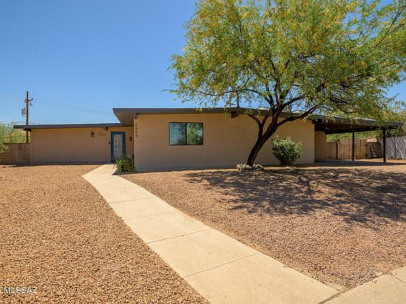 FULLY PAID SOLAR SYSTEM (only 4 years old) enjoy the benefit of Energy-Smart Living with NO ELECTRIC BILL!! Situated in one of Tucson's most desirable mid-century modern home neighborhoods in the East side, this home truly has it all: in a Cul-de-sac, this gem is one of the biggest homes in the neighborhood, with 2,890sqft of living space, 4 Beds, 2 baths PLUS A DEN! The neighborhood is under the process of getting ''historical status.'' This home is perfect to raise a family including ''A'' schools nearby. Looking for storage space? The home has a spacious storage room outside, with potential of becoming a casita. It features stunning Catalina Mountain views with a huge backyard, a bright open floor plan and no carpet all throughout the house. The home was completely remodeled in 2021, the roof was just re-coated, and fresh new paint on interior and exterior.
