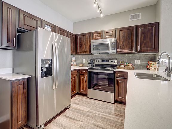 - Exterior features: 9 Ft Ceiling, Access Controlled Community, Access to C-470 & Downtown Denver via Littleton or, Balcony, Barbecue, Bike Repair Station, Brushed Nickel Hardware, Business Center, Direct Access Garages*, Framed Bathroom Mirrors, Garden-Style Soaking Tubs, Luxury Vinyl-Plank Flooring, Mature Lush Landscaping, On-Site Management, Package Receiving, Pet Friendly, Pet Park, Plush Carpeting, Tile Backsplash, Undermount Sinks