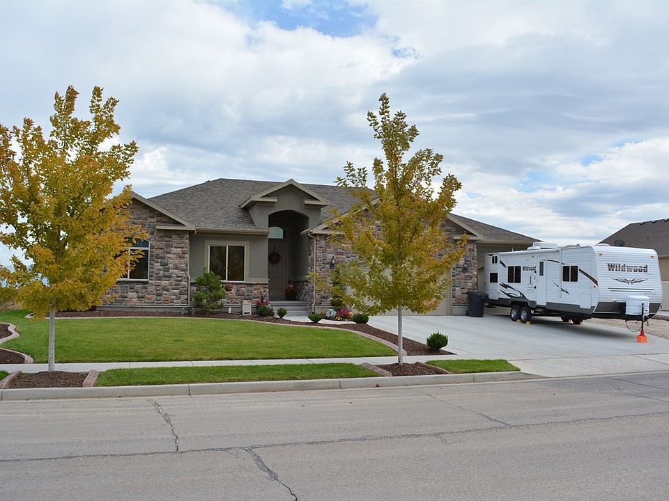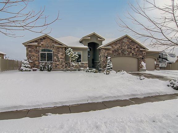 Gorgeous rambler features main floor living with open floor plan. Great room boasts vaulted ceilings, while Kitchen features tall knotty alder cabinets, stainless steel appliances and tile backsplash. Master bathroom has double sinks, separate tub, shower and toilet room. Amenities include: large laundry room, 2 tone paint, archways, expansive backyard, RV pad and large patio. Deluxe play gym and shed are included! This home is a MUST TOUR!!