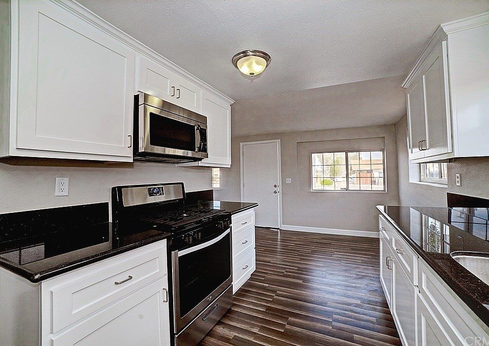 Perfect for first time home buyers or investors! Bring them to see these two remodeled units. Both units have brand-new kitchen with white cabinetry, new gas stove, microwave, counter tops, stainless steel sink, gorgeous laminated flooring and title. Front unit has 2 bedrooms and 1 bathroom. Rear unit has 1 large bedroom divided by a wall which can be use as a little second room or storage, 1 bathroom, dining are and living room with high ceiling. Both units have fresh paint throughout. All of this seated on a large lot with a good size back yard, ideal for gardening, farming or entertaining, with plenty space for parking on the front yard.