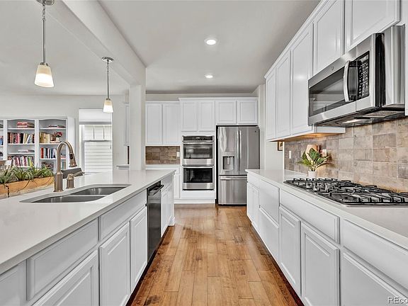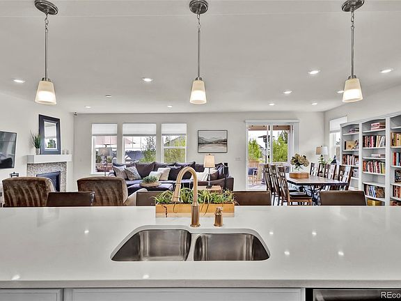 Welcome to the INSPIRATION neighborhood which offers stunning mountain views, beautiful parks, miles of trails, tennis courts, a community pool & year round events. This beautiful mountain contemporary style "Superhome" offers a 5 bedroom/4 bath main house plus an attached 1 bedroom/1 bath "next gen" suite which opens doors to a multitude of possibilities for multigenerational living or additional income. The bright & airy kitchen is a chef's dream with beautiful white cabinetry, quartz counters, a 5 burner gas cooktop, double ovens, walk in pantry, & huge center island that seats 6 with pendant lights. The adjacent family room is flooded with natural light & showcases extensive wood flooring & a cozy corner fireplace creating a warm, inviting atmosphere. Upstairs you will find a private primary suite with sitting area & a spa-like en suite bath that features dual sinks, a custom walk in shower & abundant closet. 4 additional bedrooms upstairs including a guest suite with private attached bath plus another secondary bath with dual sinks. A huge loft game room & a convenient upstairs laundry room with lots of built in storage + utility sink round out the 2nd level. Outside is a fabulous covered deck that is an entertainers dream extending the entire back of the home & an oversized covered patio below featuring an ambient stone fireplace for enjoying those cool Colorado nights - both overlooking the meticulously manicured lawn with lush landscaping providing the ultimate in privacy & enjoyment. And, if that is not enough, the next gen suite is a game changer offering a potential in-law apartment, lock-off rental or fantastic home based business space. Complete with its own side entrance & attached 1 car garage, this functional apartment offers 1 bed with adjacent study, a full bath, a 2nd laundry with stackable washer/dryer, a partial kitchen, dining/living room & access to back deck. Fully carpeted, yet unfinished walkout basement for immediate extra space if needed.