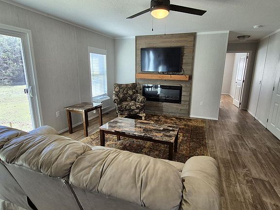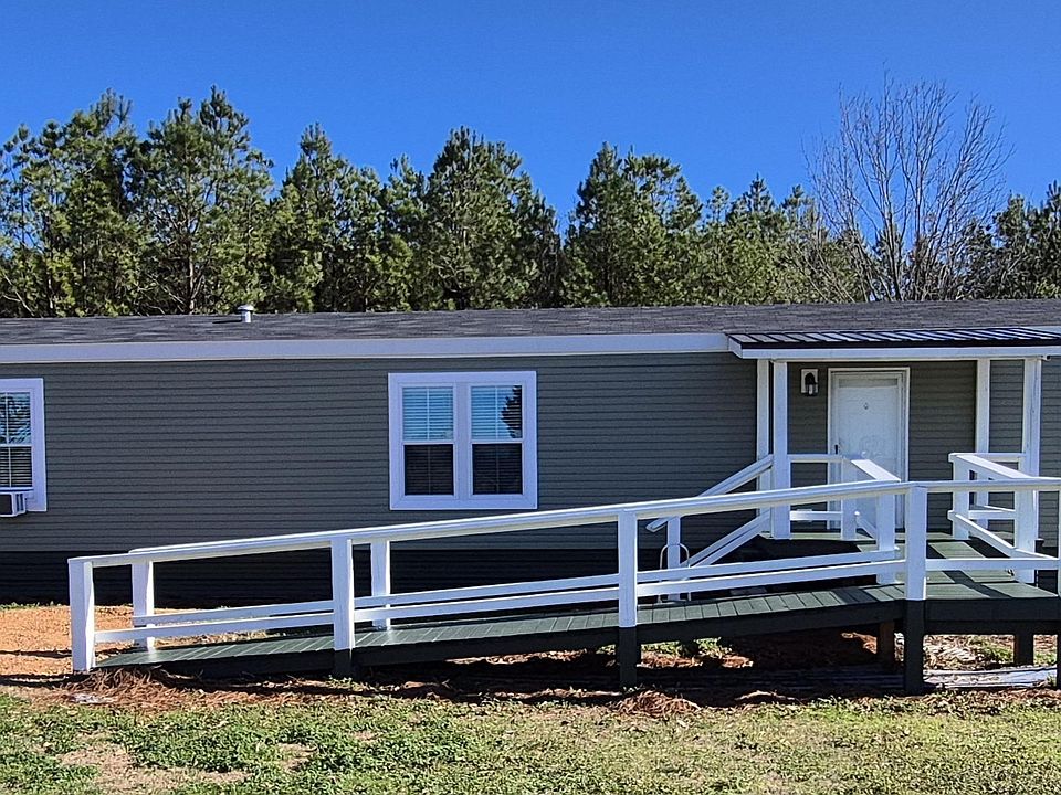 Looking for a country home? 8859 Old Stage Road could be perfect for you! Built in 2023, this charming two-bedroom mobile home has so much to offer. Step into a bright, spacious living room with abundant natural light and an electric fireplace, seamlessly connected to a roomy kitchen with generous counter space and cabinets. There's even a breakfast bar to enjoy! The oversized primary bedroom boasts a garden tub, low-entry shower, and a walk-in closet. The second bedroom offers ample space and a deep closet, while a second bathroom down the hall provides convenient access for guests. This property also features a handicap ramp and additional steps for easy accessibility.This landscaped one-acre lot features young fruit trees, and a gravel driveway that guides you right HOME. Come check out 8859 Old Stage Road in Repton, Alabama! Buyer to verify all information during due diligence.
