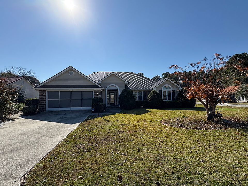 This charming single-story 3-bedroom, 2.5-bathroom home is situated on a corner lot located in the desirable community of Castlewood. The house has hardwood flooring throughout, with the living room featuring vaulted ceilings and a cozy gas fireplace. Enjoy your own private in-ground pool with a fenced-in yard and a detached pool house/shed with a bathroom, perfect for guests or outdoor entertaining. There is also a Carolina room along with a screened in porch for further entertaining space. The property has an attached two-car garage with additional storage. The home is located with easy access to Hwy 501 and Hwy 544, you can be at the beach, dining at local restaurants, or shopping within minutes.