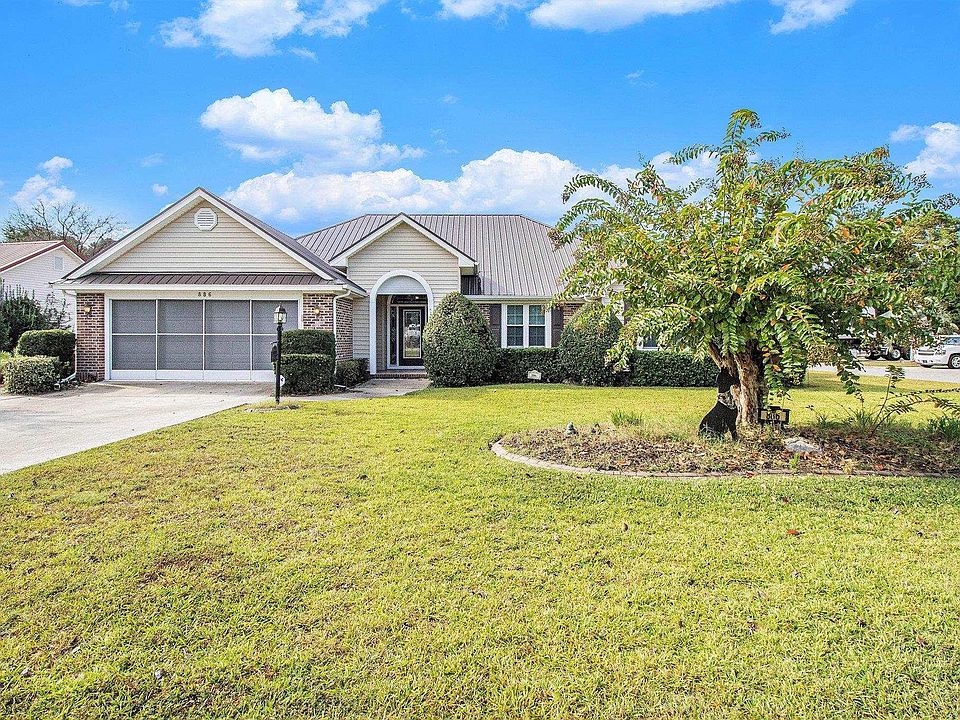 Welcome to 886 Castlewood Drive, a charming single-story 3-bedroom, 2.5-bathroom home located in the desirable non-HOA community of Castlewood. This well-maintained property boasts hardwood flooring throughout, giving it both elegance and durability. The living room features vaulted ceilings and a cozy gas fireplace, creating the perfect space to relax or entertain. Step outside to your own private oasis with an in-ground pool, ideal for cooling off on warm days. Situated on a corner lot, the fenced-in yard provides plenty of space and privacy. A bright Carolina room offers a versatile area for year-round enjoyment. The property also includes a detached pool house / shed with a convenient bathroom, perfect for guests or outdoor entertaining. A screened porch extends the living space, providing a comfortable spot to enjoy the outdoors. Recent updates include a new roof just 2 years ago, a water heater replaced last year, and a recently upgraded HVAC system. An attached two-car garage provides additional convenience and storage. Inside, the home is filled with natural light, highlighting the thoughtful layout and spacious design. The primary suite offers comfort and privacy with an attached bath. Additional bedrooms provide flexibility for family, guests, or a home office. With easy access to Hwy 501 and Hwy 544, you can be at the beach, dining at local restaurants, or shopping within minutes. The combination of updates, features, and location make this home a standout opportunity. Don't let this one get away--schedule your private tour today!