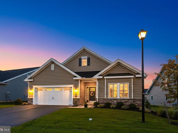 Welcome to 886 Founders Way, a stunning Franklin model in the highly desirable Traditions of America at East Petersburg, a premier 55+ community where lifestyle meets luxury. Built in 2024, this 2-bedroom, 2-bath home is loaded with nearly $150,000 in builder upgrades along with thoughtful owner enhancements, offering all the bells and whistles, plus the confidence of a brand-new home without the wait! Inside, the open-concept design blends elegance with comfort, highlighted by upgraded hardwood floors in many areas, a gourmet kitchen with high-end appliances, quartz counters, and a spacious island flowing seamlessly into the dining and living spaces. The thoughtful floorplan provides versatile spaces, generously sized bedrooms, a den that makes the perfect office, flex, or guest space (could even be used as a 3rd bedroom!), luxurious bathrooms, and enhanced storage. High-end finishes, custom millwork, and designer details are found throughout, creating a home that feels both stylish and functional. Outdoor living is equally inviting with expanded patio space perfect for entertaining or quiet evenings. Beyond the home itself, residents of Traditions of America enjoy a vibrant, resort-style community complete with a state-of-the-art clubhouse featuring an indoor golf simulator, yoga and dance studio, event space, and a full-time activities coordinator. A large pool area, scenic walking trails, and beautifully landscaped open spaces provide endless opportunities for both relaxation and recreation, making this neighborhood one of Lancaster County’s most sought-after 55+ destinations.
