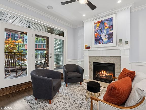 Rear balconyRadiant heated floorsHigh-end appliancesCrown moldingStainless steel kitchenMarble bathThoughtfully designed floor plan