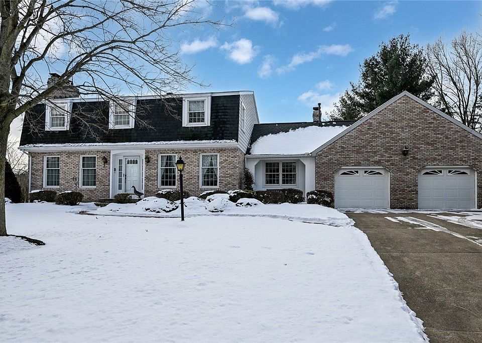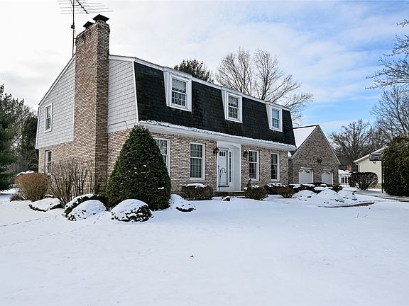 Welcome to your dream Dutch Colonial home, a stunning custom-built masterpiece that blends classic elegance with serene comfort. Upon entering the front door of the estate, you are greeted by beautiful oak hardwood flooring, which flows effortlessly through the main level of this immaculate home. The oak study, featuring a built-in desk and bookshelves, offers a perfect retreat for work or a leisurely read. Step into the vaulted family room, where exposed wood beams create a warm, inviting atmosphere, enhanced by one of three exquisite fireplaces. The kitchen boasts all new stainless steel appliances and transitions seamlessly into one of two dining areas. With four spacious bedrooms and three well-appointed bathrooms, there's plenty of room for guests. Don't miss this blank canvas of a basement, which contains a carpenter's workshop, high ceilings throughout, and is begging for your finishing touches. The stone fireplace in the basement could easily serve as the warm centerpiece of a luxurious entertainment space. Relax in the attached sunroom, with panoramic windows that invite natural light and showcase views of the creek and the backyard. Loaded with recent improvements, the home features a newer A/C (2018), roof (2019), furnace (2020), master and main bathroom counter tops, faucets, and shut-offs (2019), refrigerator (2021), siding (2022), oven and cooktop (2022), dryer (2023), dishwasher (2024), and dual sump pumps (2024). This home offers the perfect blend of sophistication and practical functionality—become just the second owner of this incredible sanctuary!