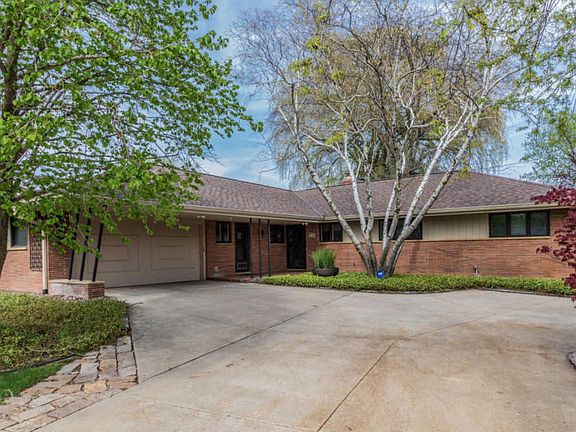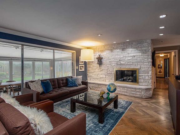 Very cool Mid Century Home! Fabulous layout, 2500 sq ft of living space, with circular floor plan. Gas log fireplace, stunning herringbone hardwood floors and updated light fixtures. 3-4 season room off the living room with access to secluded, fenced in backyard. Master suite w/sitting area, plenty of closet space including walk in closet; vaulted ceiling and access to backyard/patio. Master bath w/ jetted soaking tub and shower stall w/ spa shower. Double sink vanity. Basement w/half bath & over 2500 sq ft of storage space. Nicely landscaped yard. New Roof/Gutters 2015, New AC 2013. WOW!