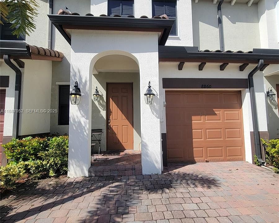 Modern cabinetsCovered garageElectric open doorStainless appliancesPavers floors