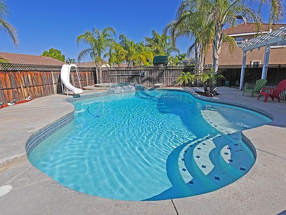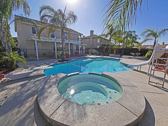 Tropical Oasis in Orangecrest Neighborhood. Welcome to your backyard retreat with a custom built pool and spa, complete with diving board and slide. Great for entertaining or enjoying a relaxing afternoon. This home features one bedroom and bath downstairs with four additional bedrooms, laundry room, and two baths upstairs. Enter your luxurious master bath, recently upgraded with custom tile work, heated jet tub, frameless shower glass, and custom vanity with quartz countertop. Home offers direct access to the two-car garage with built-in storage. Property was recently approved for drought turf removal and can be designed to your desire. Situated in desirable Orangecrest community in the award-winning Riverside Unified School District within walking distance to the elementary and middle schools. Call Us Today For Private Showing Before It Is Gone!!!