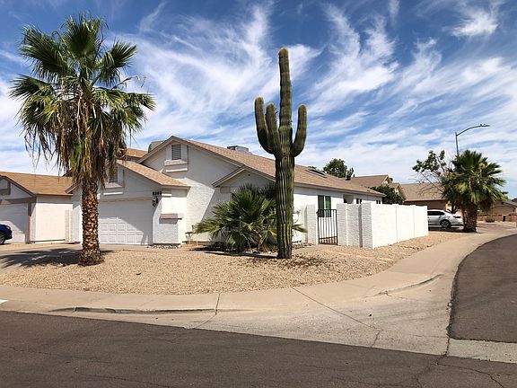 Welcome to this beautifully maintained 3-bedroom, 2-bath home located on a desirable corner lot in Peoria! You'll love the wide open floorplan filled with natural light, vaulted ceilings, neutral paint, and ceiling fans throughout. Enjoy meals in the cozy dining area with a charming bay window. The kitchen features plenty of cabinet space, ample counters, stainless steel appliances, a stylish tile backsplash, and a convenient breakfast bar - perfect for everyday living and entertaining.