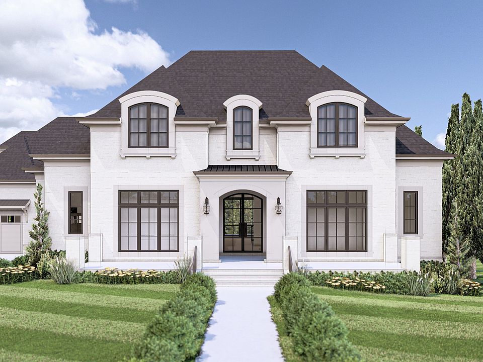 Stonegate Homes presents its newest speculative residence: a distinguished French Country-style home featuring five bedrooms and five bathrooms, currently under construction. The chef’s kitchen includes a spacious island, an oversized prep pantry with sink, and a secondary refrigerator. An open floor plan offers an offset dining area and a living room with fireplace, complemented by sliding doors that open onto a covered outdoor living space complete with a second fireplace and dedicated dining area equipped with a built-in grill. The main level comprises a primary suite featuring a luxurious bathroom with dual closets, an office, and an additional ensuite bedroom. The upper level provides three more ensuite bedrooms, a bonus room, a separate flex room, and secret playrooms adjoining bedrooms three and four. Additional amenities include three oversized garages, generous storage areas, finished garage floors, and an EV charging station. Estimated completion is April 15, 2026. Buyers may still select certain interior finishes.