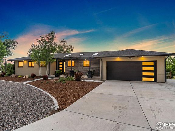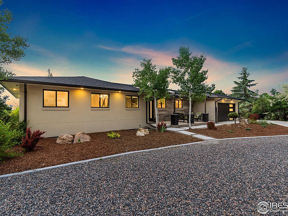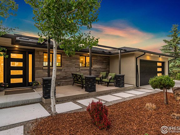 Your Niwot oasis is situated on almost an acre with picturesque mountain views and an oversized lot perfect for a small hobby farm. This 5-bedroom, 3-bathroom ranch with a walkout finished basement has been fully renovated and marries luxury modern finishes with a mid-century modern vibe. Multiple living spaces create the ideal environment for gatherings, and inside, vaulted ceilings and an open living area are illuminated in sunlight. The newly renovated kitchen is brilliantly appointed with quartz countertops and a gas range, soft close drawers and cabinets, and a spacious island with a waterfall edge. The great room opens to a four season porch, perfect for lounging, reading, and sipping your favorite drink next to the cozy electric fireplace. The main level boasts hardwoods throughout, and tile in all wet areas. It includes a private study, a primary suite with a five piece luxury bath and ingress to the back deck, and a secondary bedroom and bathroom.The basement provides walk-out access to the covered patio and yard, and room to spread out with a large living area perfect for your home theater. An additional three bedrooms are intelligently laid out alongside a 3rd bathroom and a den/playroom. Outside, the expansive lot offers endless possibilities for gardening and outdoor activities along with a gazebo - a prime location for a fire pit to warm the cool Colorado evenings. Walk to school without ever touching the road! 10 ft easement behind the property borders open space that offers a straight path to the elementary! RV parking available. Newer roof, on-demand water heater, and oversized furnace. Close to Niwot HS, trails, Boulder Reservoir, and just 15 minutes from Boulder. Find peace and tranquility in this quiet town with easy access to amenities.