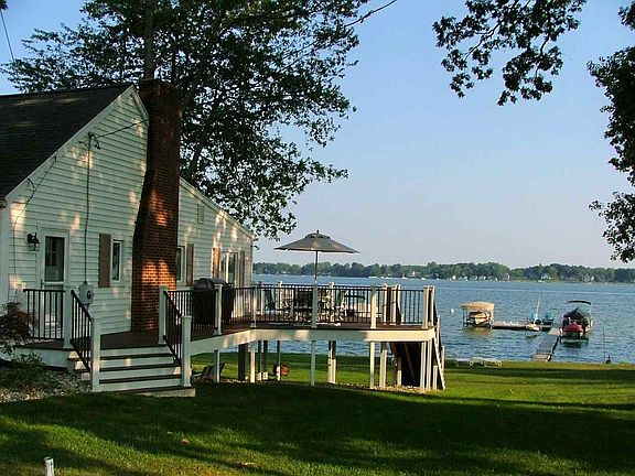 Devils Lake Lakefront Home: Cherry Point; 4B/R, 2.5 Bath; 75 of great waterfront; Composite deck; Spacious yard; Fireplace; Beamed cathedral ceilings; Inviting with tons of cottage style; Lower level walk-out w/ 12 doors for storage; Central air; Sprinkler system; Ample parking. What more do you need?