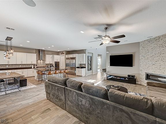 THIS WON'T LAST!! GORGEOUS 4b, 4ba home w/POOL in GATED community in desirable SOUTHWEST location!! Huge, open layout GOURMET kitchen w/ Impala black granite countertops, 42" Sonoma Linen cabinets, all stainless steel kitchen appliances incl. 72" stainless steel Electrolux kitchen fridge. Open concept living with a patio door overlooking a sparkling pool w/ waterfall features, a finished, low maintenance landscaped backyard. Ceiling fans throughout, an outdoor built-in BBQ area with covered patio, spiral staircase to a huge master with walk-in closet & a huge master bath. A DOWNSTAIRS BEDROOM w/ it's own private bathroom. Oversized tandem garage with tons of storage space, EV hookup. LOCATION, LOCATION, LOCATION! Close to Durango Casino, The Commons, shopping, restaurants, 215 access...