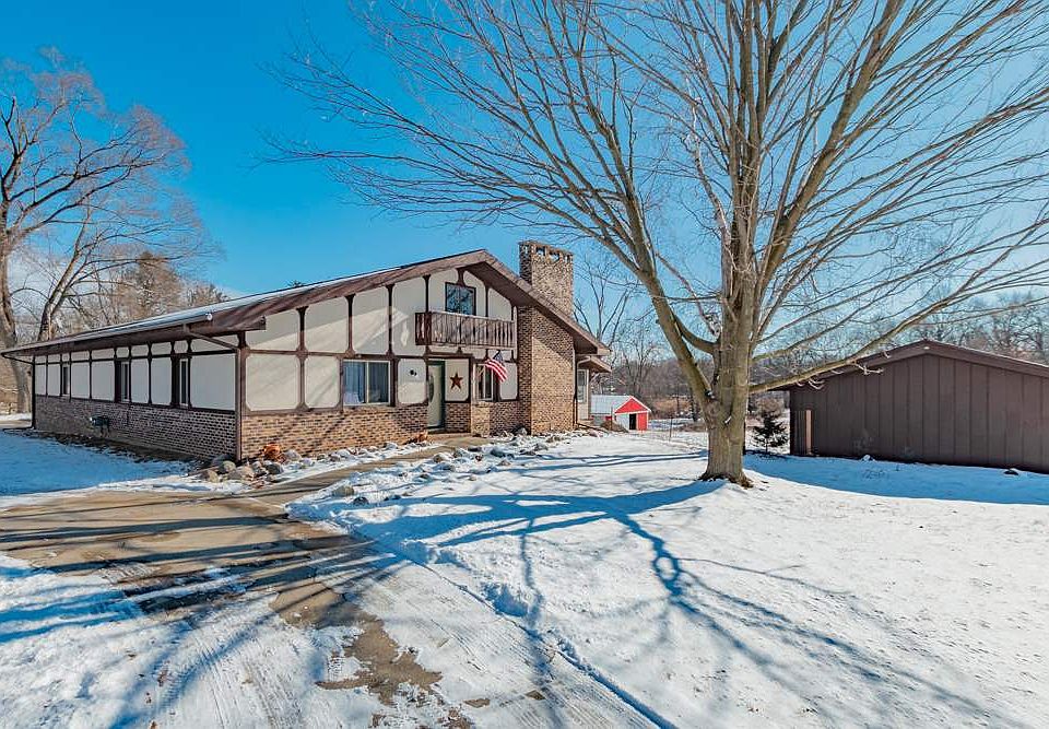Wonderful home situated on almost 4 riverfront acres, just north of Brooklyn Mi. This unique home features main floor living, complete with new boiler and AC, And a 3rd bedroom option in the large loft area. In addition to the horse/animal barn and the detached garage, you have a large attached shop with an insulated game room and half bath. The back yard is completely fenced in down to the river, where you can launch a kayak into Goose creek, and off into the Raison River! This home has so many aspects to help you love your life, and live the best one you can, so don't miss out!