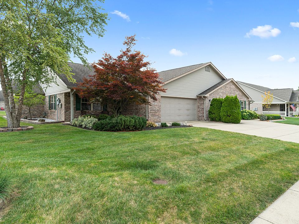 Welcome to 8865 Stepping Stone Way in Avon, IN! This charming two-bedroom, two-bathroom house offers a perfect blend of comfort and convenience, ideal for those looking to downsize and enjoy a relaxed lifestyle. Step inside to discover an open concept layout that beautifully integrates the living, dining, and kitchen areas-perfect for entertaining or a cozy evening by the gas fireplace. Each room is adorned with natural light that enhances the serene pond view, visible through the ample windows. The house includes a practical, all-inclusive appliance package, ensuring a hassle-free move. Additionally, the added bonus of a three-season room offers a peaceful retreat to enjoy the changing seasons without leaving the comfort of your home. Living here means you will benefit from maintenance-free living. Lawn care and snow removal services are taken care of, providing more time to enjoy all that Avon has to offer. The location is unbeatable, with easy access to local shopping, dining, and entertainment options just a short drive away. The all brick home with a full finished garage is a true great find. This is a 55 and older community. This is a paired patio home. Possession at closing. 1 year choice home warranty provided to the buyer.