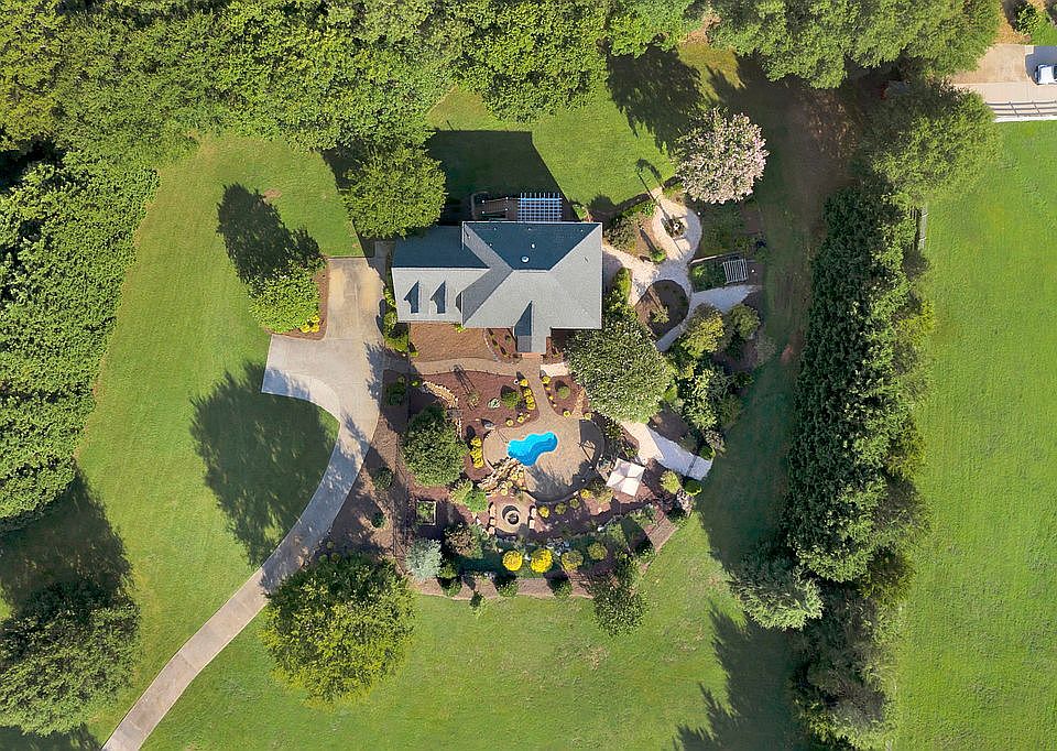 LOCATION & PRIVACY! NO HOA! Unique opportunity to own this peaceful 4-acre paradise minutes from Ballantyne! Full brick Home surrounded by nature has Salt Water pool, flower/vegetable gardens with paths to screened wired gazebo that overlooks private pond with fountain. Stunning views from EVERY ROOM! Large gathering areas & spacious bedrooms. Inlaid Cararra marble entry floor, Brazilian Cherry hardwood floors, crown molding. Chef's dream kitchen: Fresh White Cabinets, Granite counters, tile backsplash, large breakfast room & Frigidaire Pro range. Travertine tile, Cararra marble, quartz & extensive tile work throughout bathrooms. Custom closet systems. Large laundry room has utility sink with granite top. Mature evergreens & landscaping. Front patio overlooks waterfall cascading into heated jetted pool. NEWLY installed 4-bedroom permitted septic system (2021). Home features updated Windows, NEST thermostats, 30-year Architectural roof and Rinnai Tankless Water heater.