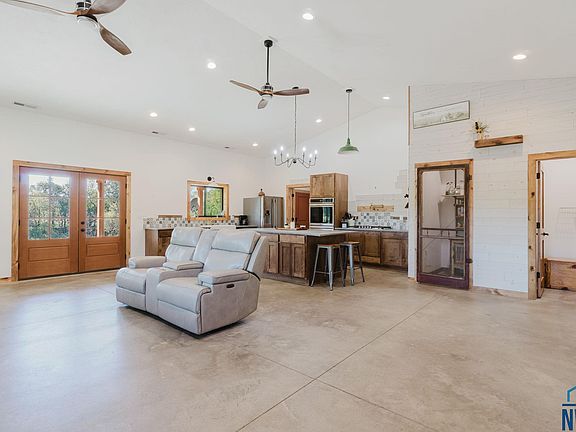 Experience peaceful country living in this stunning 2-bed, 2-bath custom home on 3 acres in Newcastle, Nebraska. Built in 2023, this property features an open floor plan with radiant heated concrete floors, a gourmet kitchen with custom birch cabinetry and concrete countertops, and a spacious living area designed for comfort and entertaining. Enjoy sunrise views from the wraparound cedar porch or relax in the oversized heated garage. Additional highlights include a safe room, on-demand water heater, and Lennox heating and cooling system. Conveniently located near the Missouri River and just a short drive to Vermillion, Yankton, and Sioux City—offering the perfect blend of privacy, quality, and accessibility.