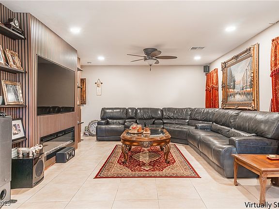 Victorian-inspired home located in Southwest Las Vegas, just moments from Summerlin South and the new Durango Casino. This 3-story, 5-bed/4-bath home blends classic style with modern function. The first floor centers on a customized kitchen that flows to an entertainment lounge featuring designer acoustic panels and a 5.1 surround-sound setup. Upstairs, the 2nd level offers a flexible loft, two secondary bedrooms with a Jack-and-Jill bath, and a serene primary suite with a walk-in closet. The third floor delivers rare space—a dedicated music studio plus a separate home gym. Outside, enjoy a fully tailored backyard with pavers, a durable metal patio cover, and a convenient sink station—perfect for cooking and easy indoor-outdoor hosting. Solar panels help trim electric costs. Tucked in a quiet, peaceful location yet close to city conveniences—this is Las Vegas living with personality and practicality—this is Las Vegas living with personality and practicality.