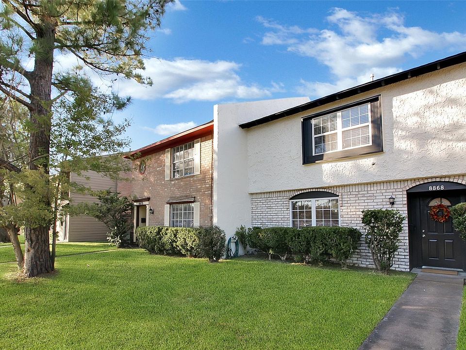 Large 2-bedroom, 2-story townhome with 2-car garage in a small community in sought-after Central Spring Branch. Beautifully renovated: double pane windows w/ faux wood blinds, paneled doors, quartz counter tops, subway backsplash, laminate wood floors & porcelain tiles, sinks, faucets, light fixtures, contemporary hardware, stainless appliances. AC 2019. Sparkling clean. Spacious bedrooms w/ Hollywood bath - two private bathrooms w/ separate toilets and vanities and shared bathtub. Plenty of storage, primary dressing room w/ makeup vanity and double closets, walk-in closet in 2nd bedroom, front hallway w/ large closet. Half bath and laundry room conveniently located downstairs. Elegant living room w/ recessed lighting. Big kitchen with a central island opens to the dining area. Sliding door to a huge private patio, large two-car garage. Attractive location, just minutes from Galleria and Memorial City. Owner/agent.