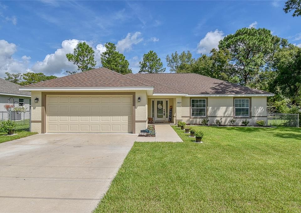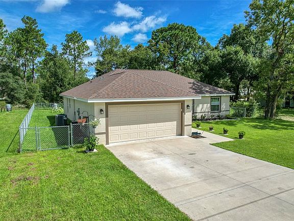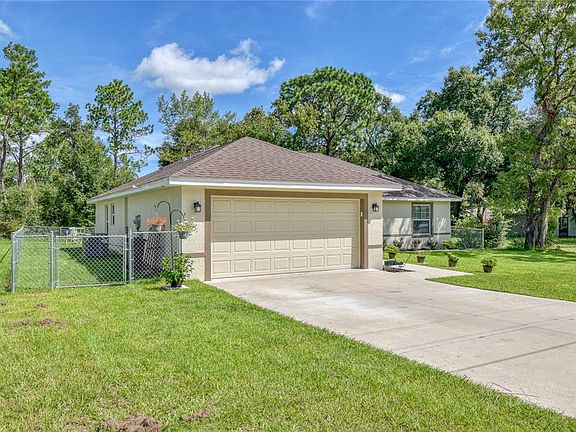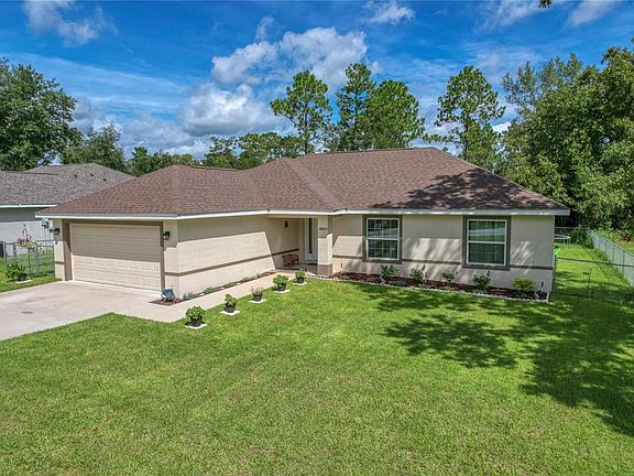 Why wait to build. Check out this gorgeous 2021 3/2 home with an additional den/office/playroom in Orange Blossom Hills. Beautiful curb appeal and glass front door welcomes you in. Step inside and you will notice the open floor plan with LVP flooring, lots of natural light and vaulted ceiling. Large kitchen has granite counter tops, soft close drawers, SS appliances, breakfast bar, lots of counter/cabinet space and more. Master bedroom features ensuite bath with dual sinks, large walk in shower, soaking tub, nice size closet and toilet closet. Guest bedrooms are the perfect size for all your guests. Sit outside and enjoy the sounds of nature on the covered patio. Large yard is fenced so perfect size to add a pool and for your fur babies to run. Close to Ocala, Belleview and The Villages so plenty of shopping and restaurants to enjoy.