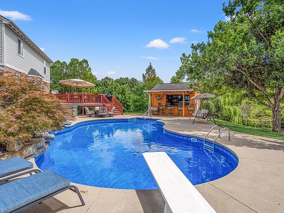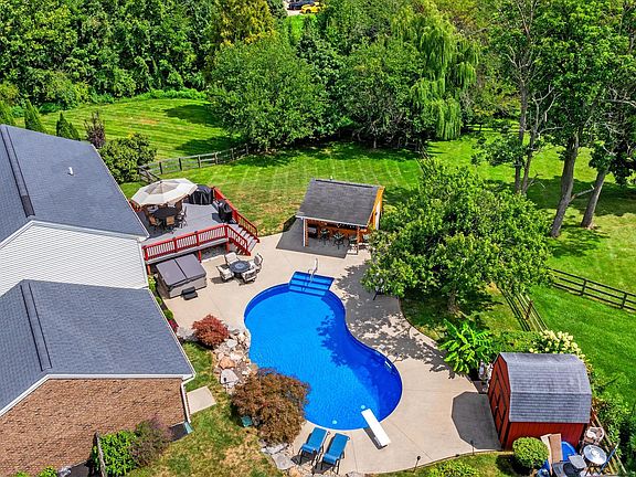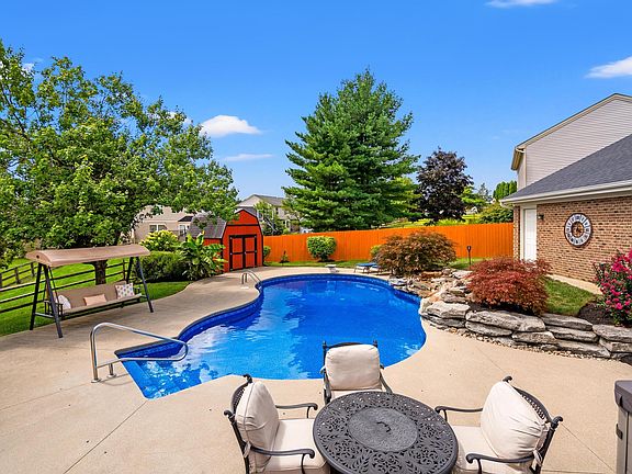 !!OPEN HOUSE CANCELLED!! Step into your own private paradise! This home features an entertainer's dream backyard with a stunning inground pool and waterfall, tiki hut with wet bar and convenient half bath (perfect for pool days with no wet footprints in the house), large deck, fenced yard, and storage shed for all of your pool equipment and toys. Inside, you'll find 4 bedrooms, fresh paint, newer carpet, and hardwood floors in the kitchen and office. The spacious kitchen with granite counters and tile backsplash flows seamlessly into a great room with a cozy gas fireplace. First-floor office or study adds versatile space, while the primary suite wows with vaulted ceilings, private bath with shower and soaking tub, and a walk-in closet. The finished lower level features a built-in entertainment center, wet bar with full-size fridge and oven, full bath, and hobby or toy room. There is also an oversized two-car garage with rear service door, and the home is nestled in a quiet cul-de-sac. Every detail of this home is designed for comfort and fun inside and out!